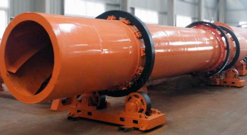 干燥的濕物料由皮帶輸送機或斗式提升機送到料斗,然后經料斗的加料機通過加料管道進入加料端。加料管道的斜度要大于物料的自然傾角,以便物料順利流入干燥器內。干燥器圓筒是一個與水平線略成傾斜的旋轉圓筒。物料從較高一端加入,載熱體由低端進入,與物料成逆流接觸,也有載熱體和物料一起并流進入筒體的。隨著圓筒的轉動物料受重力作用運行到較底的一端。濕物料在筒體內向前移動過程中,直接或間接得到了載熱體的給熱,使濕物料得以干燥,然后在出料端經皮帶機或螺旋輸送機送出。在筒體內壁上裝有抄板,它的作用是把物料抄起來又撒下,使物料與氣流的接觸表面增大,以提高干燥速率并促進物料前進。載熱體一般分為熱空氣、煙道氣等。載熱體經干燥器以后,一般需要旋風除塵器將氣體內所帶物料捕集下來。如需進一步減少尾氣含塵量,還應經過袋式除塵器或濕法除塵器后再放排放。